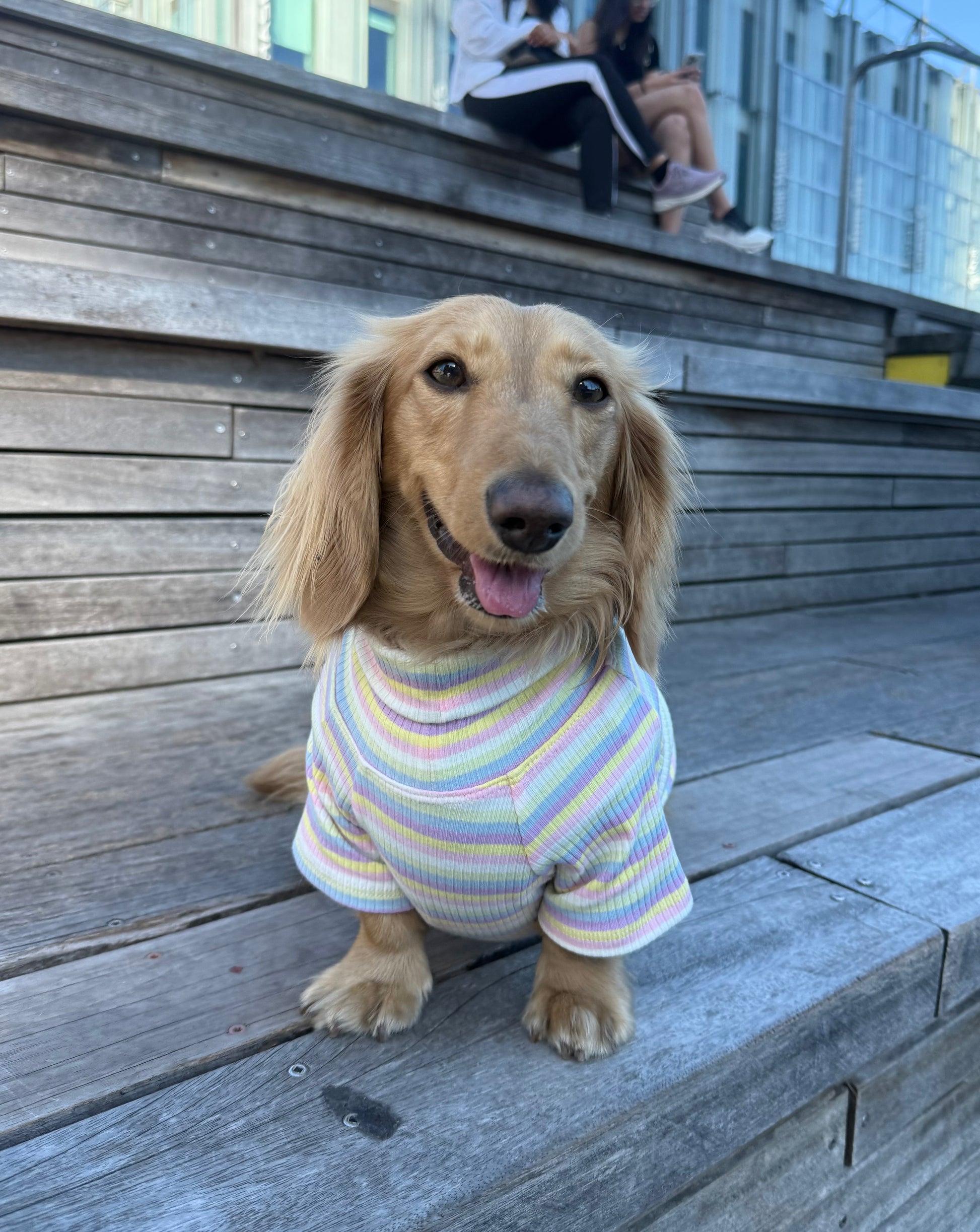Bold Style: Eye-catching pastel stripe pattern for dogs who love to turn heads.