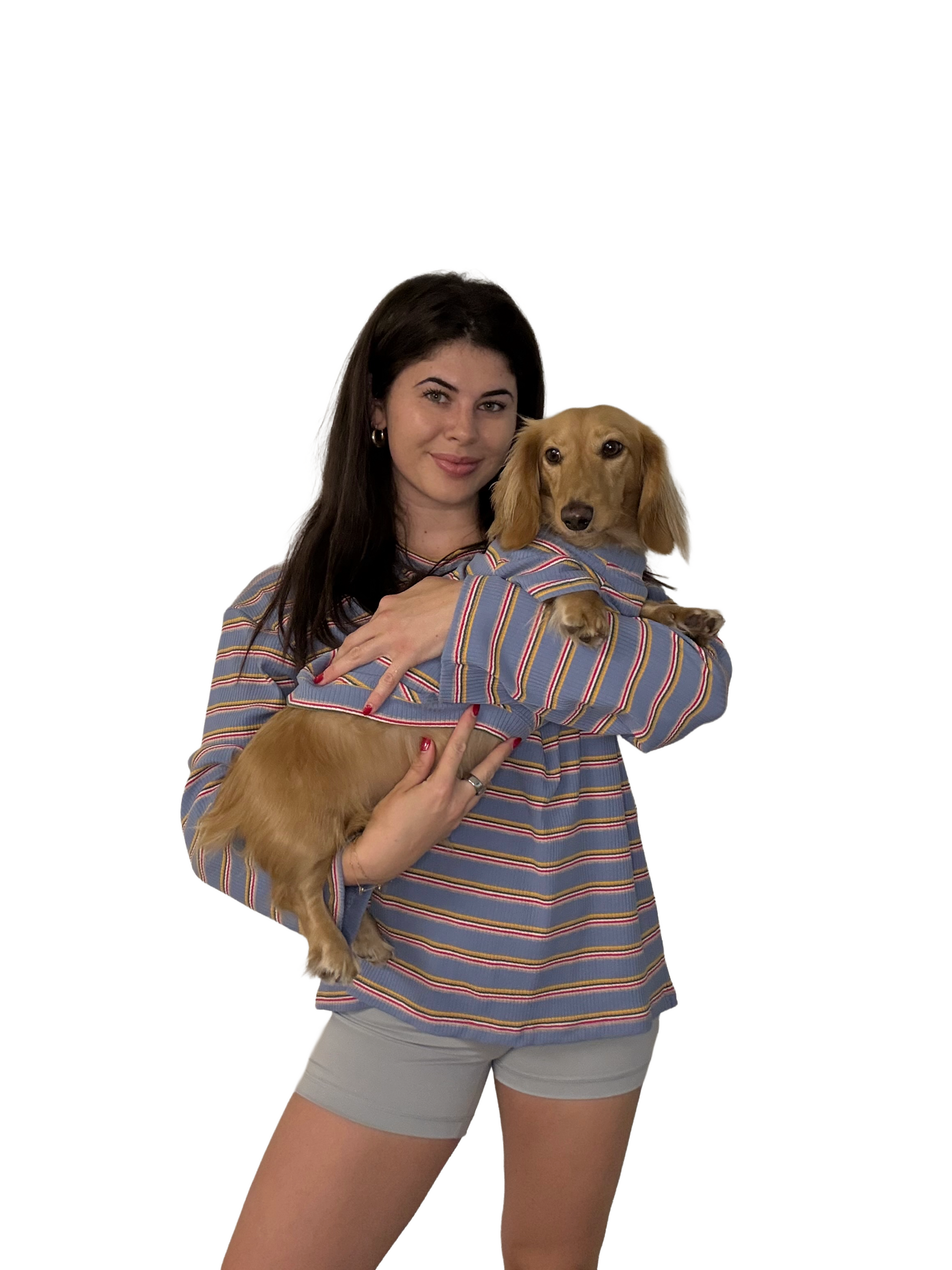 Our stylish and super comfortable matching sets will help you take your bond with your furry best friend to the next level. Designed for comfort, fun, and functionality, this adorable duo is perfect for pet lovers who want to show off their connection in the cutest way possible. This set is great to wear as a pajamas as well, or whenever you'd like!
