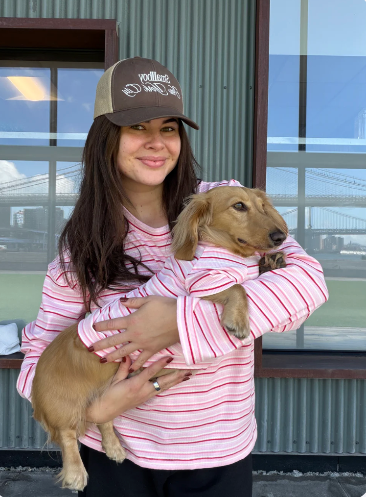 You and your pup’s new go-to for cozy days and park strolls. The Strawberry Milk Matching Set mixes playful charm with all-day comfort - featuring soft, ribbed fabric in pastel pink and strawberry-red stripes. Designed for pups who love to look sweet, stylish, and effortlessly cool (and for humans who love to match them).
